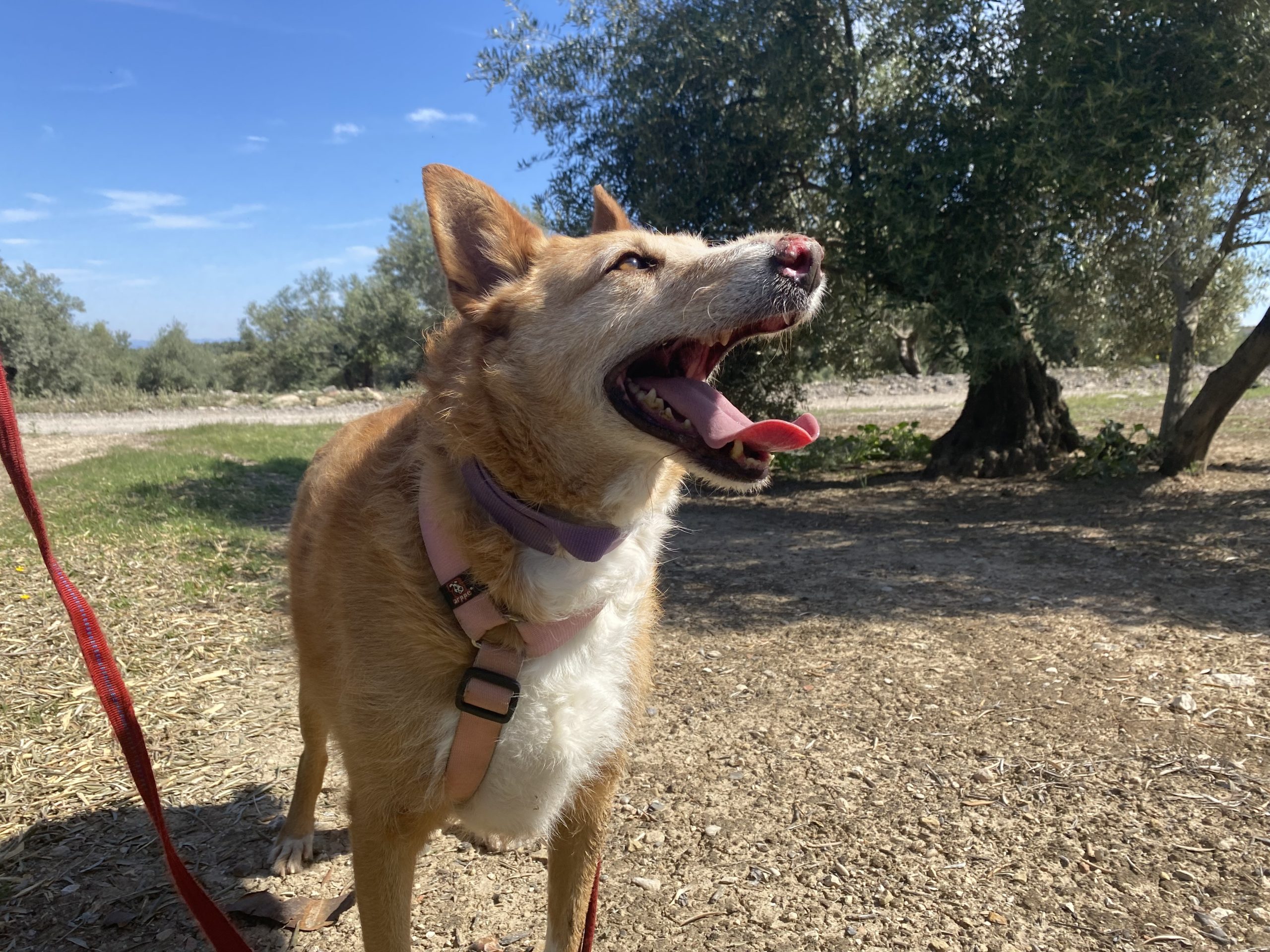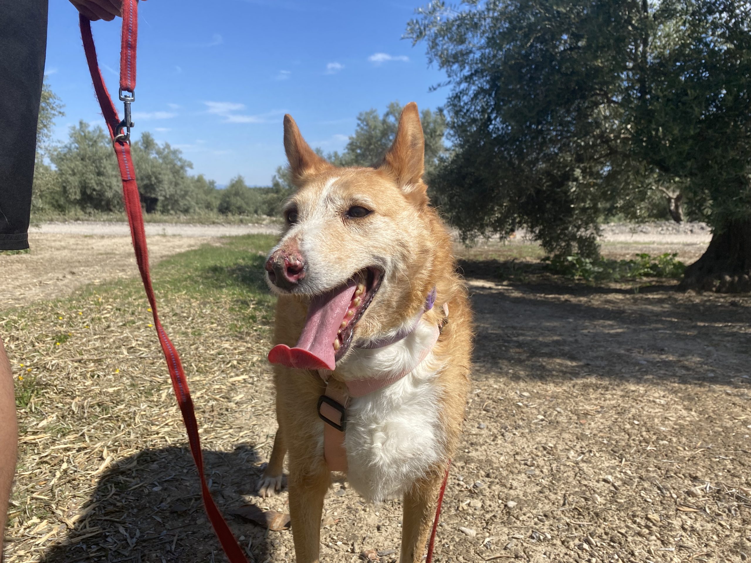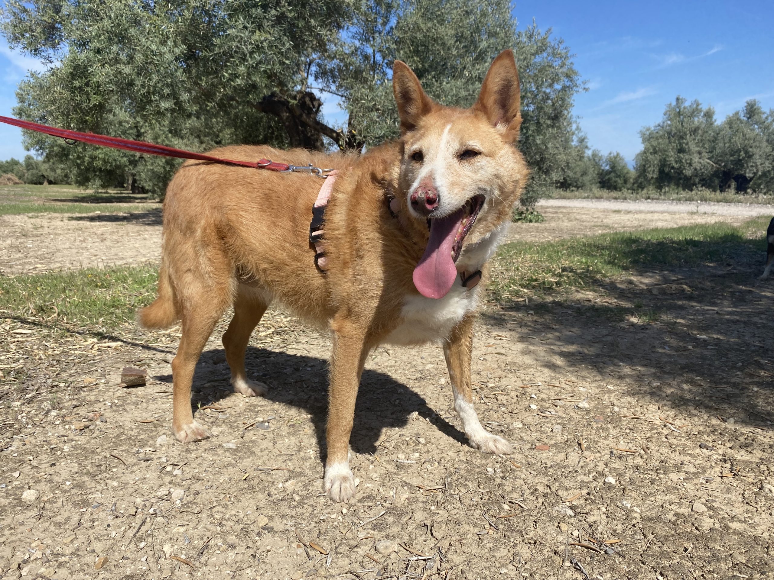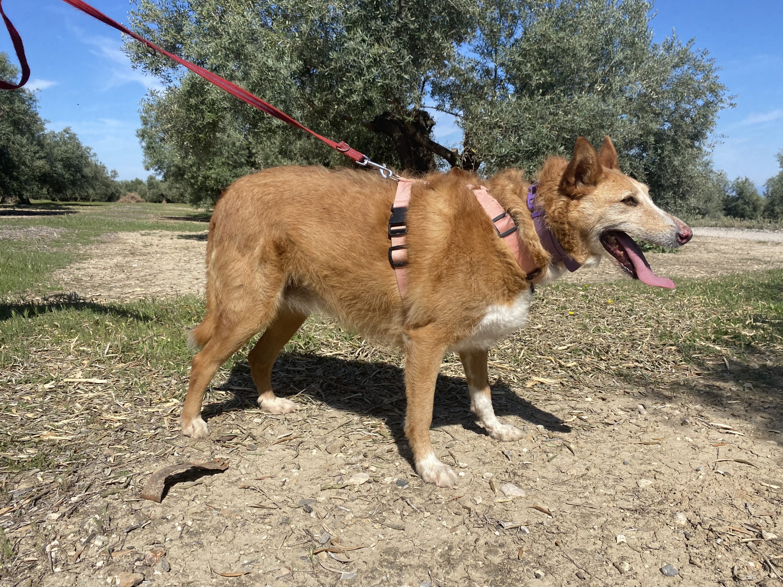 En su primera salida al exterior nos puso esa carita de buena, con esos ojos claros tan preciosos que te enamoran y se portó bastante bien, pero en realidad está deseando encontrar los compañeros ideales para divertirse y jugar sin parar.