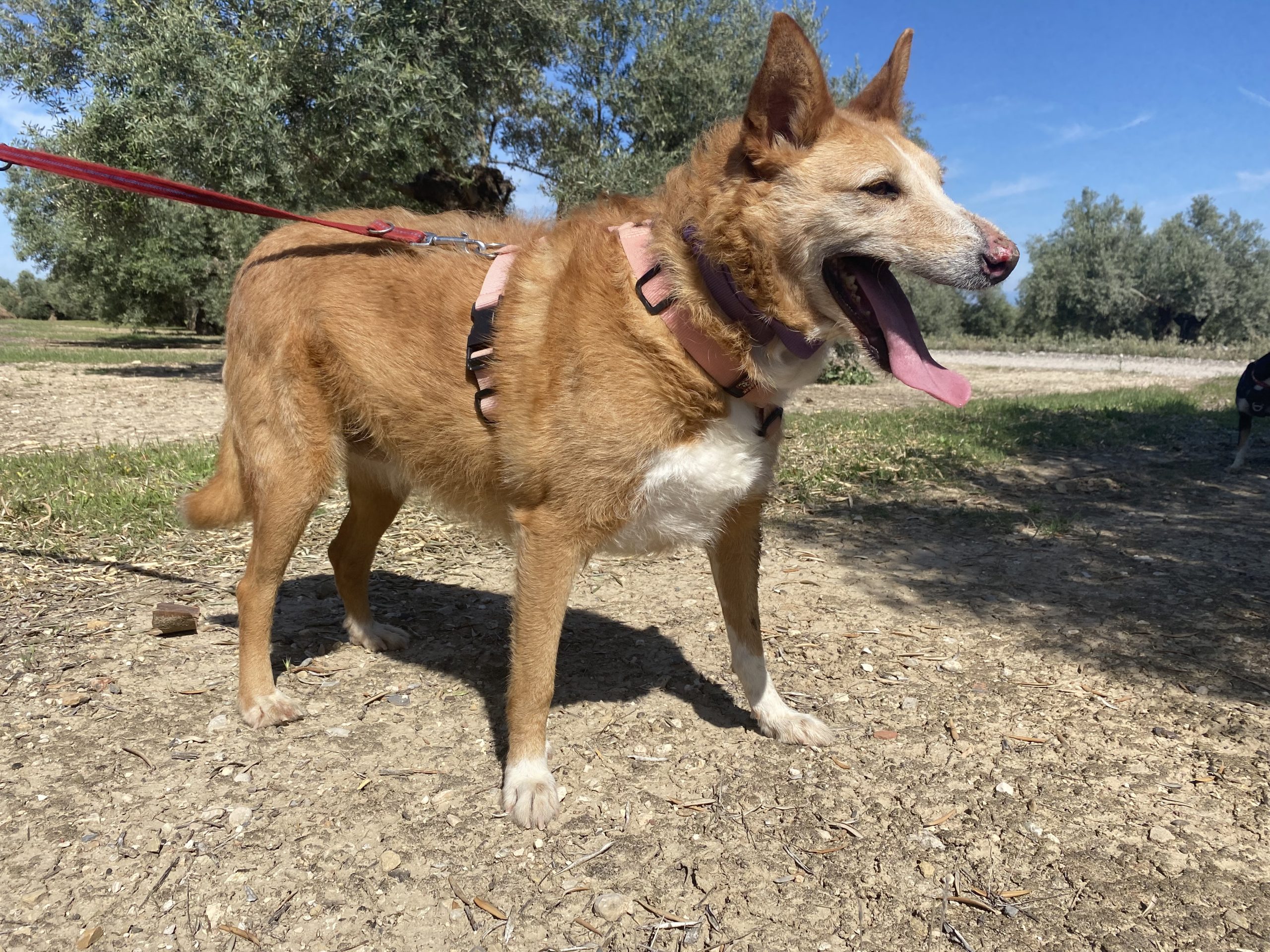 On her first outing abroad she gave us that good little face, with those beautiful clear eyes that make you fall in love and she behaved quite well, but in reality she is wanting to find the ideal companions to have fun and play non-stop.